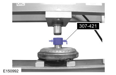 Install the torque converter leak tester (307-421) into the torque converter hub.