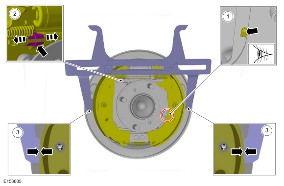 Ford Ecosport: Parking Brake and Actuation / General Procedures - Parking Brake Cable Adjustment - Vehicles With: Rear Drum Brakes