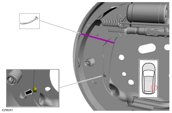 Install a cable tie on the RH rear brake shoe and the parking brake lever.