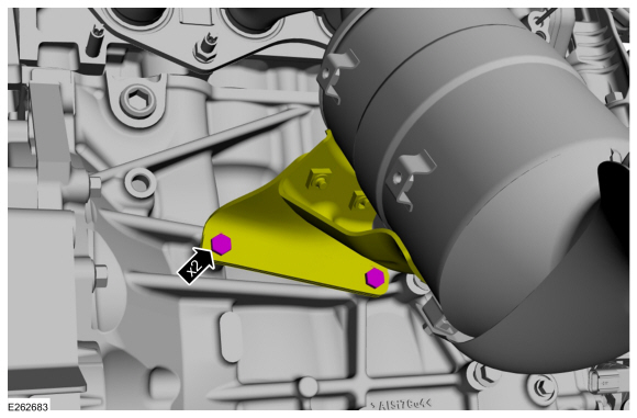 Remove the bolts and position aside catalytic converter mounting bracket.